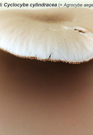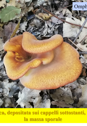 Un elemento che riveste una certa importanza soprattutto per la determinazione di alcune specie fungine e che, in ogni caso, spesso incanta, è la valutazione del colore della cosiddetta ‘sporata in massa’ (o ‘impronta sporale’). Si tratta della massa delle spore mature che il fungo rilascia nell’ambiente. In natura la si può osservare o sul terreno o sulla vegetazione situata sotto o sui cappelli dei funghi sottostanti [foto 1], ma anche sulle lamelle, sull’anello [foto 2] o addirittura sul gambo del fungo che sta sporulando (cioè in fase di rilascio delle spore in habitat). E se le singole spore saranno visibili solo al microscopio, a occhio nudo potrà essere notato solo il loro accumulo; ma, con una semplice tecnica, si riesce a produrre la sporata degli esemplari raccolti e quindi individuarne il colore dominante. E questo perché i nostri professori di micologia ci hanno sempre insegnato che uno dei primi elementi necessari alla determinazione dei funghi (Genere e/o Specie) è appunto quello di controllare la sporata di massa.