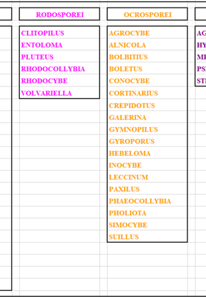 · OCROSPOREI: il colore della sporata è ocra, bruno scuro, bruno ruggine;