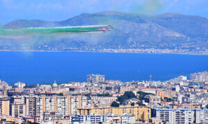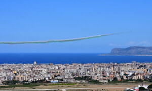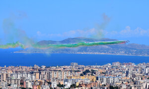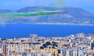 In occasione del Giro d'Italia delle FRECCE TRICOLORI, con l'intento di effettuate una serie di sorvoli su tutti i capoluoghi di regione per la celebrazione del 74° anniversario della proclamazione della Repubblica, oggi pomeriggio (mercoledì 27 maggio 2020) dalle 15.15 la nostra Pattuglia Acrobatica Nazionale ha sorvolato la città di Palermo per il suo "Abbraccio Tricolore": proveniente da Cagliari, è entrata in città da Mondello; ha poi sorvolato via della Libertà, via Ruggero Settimo e via Maqueda sino alla Stazione Centrale, punto in cui ha effettuato una apertura sul mare davanti al Foro Italico per risalire infine Corso Vittorio Emanuele e Corso Calatafimi fino a Monreale.