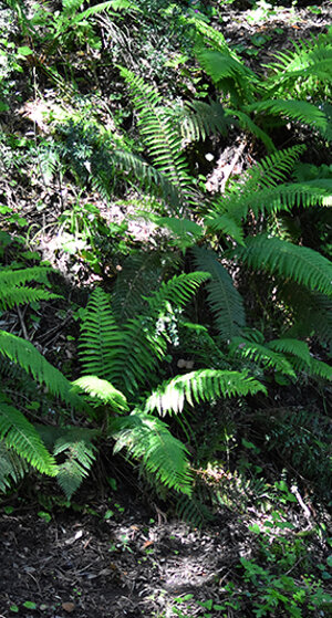 Tra le diverse specie felci ospitate si possono ammirare le insolite Osmunda regalis, che può presentare a volte un vero e proprio fusto basale e la Phyllitis scolopendrium o felce a lingua, che cresce nei luoghi più bui e umidi del vallone.